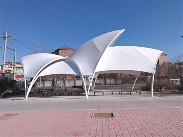 膜结构现在被广泛使用,如出入口、景观、车棚等。接下来,我们将重点介绍膜结构出入口的选择,主要讲述选择时应注意的几个问题,如耐久性、耐火性等。 1.耐久性、抗老化性能、自清洁性能和对各种气候的适应性。 2.钢材的选择:钢材的选择遵循膜材料